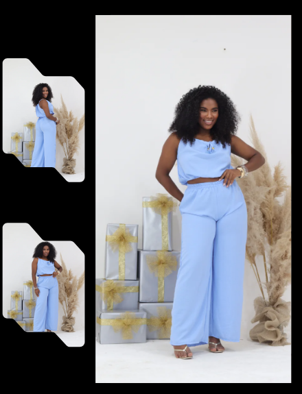 Conjunto moderno e confortável, composto por cropped e calça pantalona de caimento leve. Ideal para quem busca praticidade sem abrir mão do estilo, perfeito para o dia a dia ou produções mais elegantes.