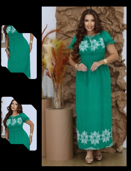 Modelo longo em crepe, com detalhes delicados na estampa e ótimo caimento. Peça versátil para eventos e ocasiões especiais.
