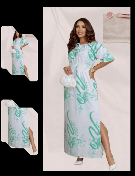 Vestido longo em crepe, com detalhe em lastex na cintura e fenda lateral que valoriza a silhueta e estampa cor verde menta. Peça elegante, confortável e perfeita para ocasiões especiais.